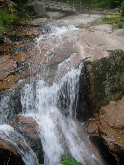 Wir fuhren zuerst zur "Flume Gorge" im Franconia Notch State Park in NH, einer natürlichen Granitschlucht am Fuße des Mount Liberty. Der Trail ist ca. 3,2 km lang und wird mit einer Laufzeit von 75 Min. angegeben. Wir ließen uns Zeit, genossen immer wieder spektakuläre Ein und Ausblicke und benötigten ca. 1h30. Haben auch nicht den Shuttlebus direkt zum Eingang der Flume benutzt, sind auch diesen 1km gelaufen! Deshalb konnten wir auch ein tolles Bild von der Covered Bridge machen durch die der Bus fuhr. Direkt nach dem Eingang zur Schlucht ging es ziemlich steil bergauf direkt zum Table Rock. Danach ging es auf einem schmalen Weg, später auf einem Holzsteg weiter. Immer wieder tolle Wasserläufe, Wasserfälle und steil aufragende Granitwände. Aber wie gesagt: a lots of steps upstairs, and a long way downhill!! Meine Knie!!