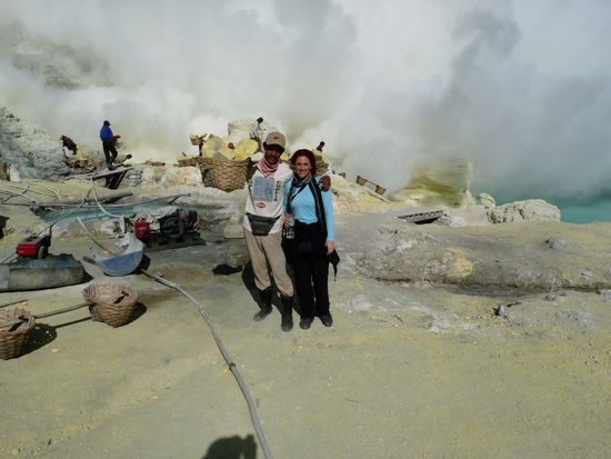 Das war einfach toll, wir mussten zwar für den Mount Bromo um 3 Uhr morgens aufstehen, wurden jedoch mit einem wunderschönen Sonnenaufgang belohnt. Einziger Nachteil: zu viele Touristen. Es war richtig schwer ein paar gute Bilder zu bekommen bei so vielen Leuten, aber ich glaube es hat sich trotzdem gelohnt. Am nächsten Tag ging dann auch schon weiter mit Minibus zum Mount Ijen, ganz im Osten von Java. Der Weg dort hin war ein echt steiniger Weg. Gunung Ijen heisst übersetzt "Lonely Mountain und der Vulkan liegt 2148 Meter über Meer. Die Strassen sind total kaputt und fast unbefahrbar. Aber auch das haben wir nach 6 Stunden gemeistert. Der Aufstieg zum Ijen war auf jeden Fall ein bisschen härter wie beim Mount Bromo, aber es hat sich auf jeden Fall gelohnt. Unglaublich war die Aussicht auf den Seekrater. Auf den Weg hoch trifft man die Schwefelträger. Diese tragen den Schwefel den Krater hoch und dann den Berg hinunter, meistens verlangen sie für ein Foto ein bisschen Geld oder nehmen auch gerne eine Zigarette an. Alle Schwefelträger tragen so ca. 70 kg herum. Man kann auch deutlich die verkrümmten Rücken sehen. Ein grausamer Job!!! Aber ja, ich nehme mal an, wenn sie was verdienen möchten, bleibt Ihnen nichts anderes übrig wie Schwefel zu schleppen. Ich war total beeindruckt. Unten im Krater kommt auch Schwefelrauch heraus und manchmal steht man mittendrin. Man kann dann kaum atmen und man bekommt einen unheimlichen Husten. Auf jeden Fall hat sich der Auf- und Abstieg total gelohnt. Sehr interessant.
