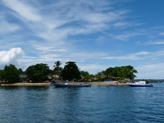 Am nächsten Tag fuhren wir dann weiter Richtung Norden. Unser Ziel waren die Togean Islands. Aber der Weg dorthin war lang und schwer. Nach einer 15-stündigen Busfahrt übernachteten wir in Poso, ein kleines Städtchen am Meer. Am nächsten Tag ging's dann früh morgens weiter nach Ampana. Die Fahrt dauerte 7 Stunden. Dort mussten wir noch mal übernachten, denn die Fähre zu den Togeans war leider schon weg. Die Bootsfahrt zu den Togeans dauerte nochmals 5 Stunden und das waren auch 5 sehr lange Stunden denn es war nicht eine Fähre sondern einfach ein öffentliches Holzboot. Somit saßen wir die 5 Stunden zusammengepfercht mit den Einheimischen auf dem Holzboden herum. Die Fahrt zu den Togeans war jedoch super schön. Man fährt an wunderschönen Inseln vorbei. Die Togeans Islands sind total felsige Inseln, irgendwie hatte ich mir diese ganz anders vorgestellt, keine Ahnung warum, aber ich hatte Riesenstrände erwartet. Die Strände hier sind aber ziemlich klein, aber ansonst sehr gemütlich und zu dieser Zeit, also in der Nebensaison, nicht sonderlich gut besucht. Für die nächsten Tage war somit viel Ruhe angesagt. Da ich leider in einem der Busse eine Erkältung erwischt hatte, konnte ich auch nicht tauchen gehen. Ich wagte mich zwar auf einen Tauchgang, aber ich musste es dann sein lassen, da ich während des Tauchgangs Schwindelgefühle hatte. Ich besuchte 2 Inseln auf den Togeans, Kadidiri und Katupat, wobei ich sagen muss, dass mir Katupat um einiges besser gefallen hat. Die Stimmung in Katupat ist sehr familiär und man wird auch sehr gut bekocht. Die Zeit auf den Togean Islands war super schön, außer Schnorcheln, Schlafen und Essen hab ich nicht viel gemacht.