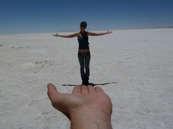 Eine Salzwüste so groß wie halb Hessen breitete sich vor uns in einem blendenden Weiss aus, welches jeder Beschreibung spottet!! Das Bild war zum "in die Luft gehen"