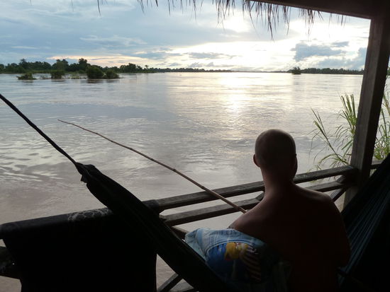 Wir sind bereits seit ueber einer Woche mit zwei Englaendern unterwegs, und so haben wir dann beschlossen, gemeinsam nach 4000 islands zu fahren. Das befindet sich in der Naehe zur kambodianischen Grenze und ist wohl einer der breitesten Bereiche des Mekongs. Ueberhaupt ist der Mekong ein beeindruckendes Gewaesser und heisst zurecht: Mutter aller Fluesse..