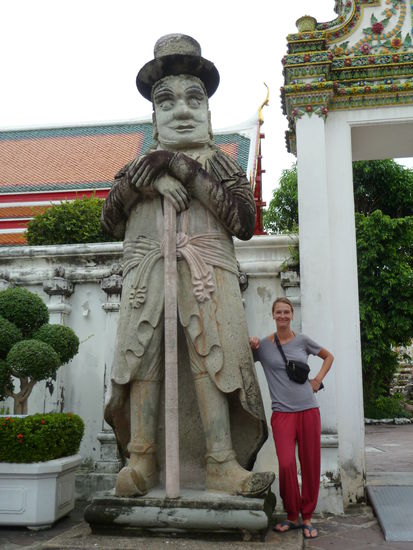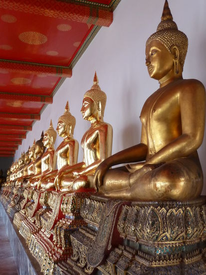 In Bangkok haben wir uns das wunderschoene Wat Pho angschaut, einem Buddhistischen Tempel der Superlative, in dem sich ein 46m grosser liegender Buddha befindet. Das war schon sehr beeindruckend.