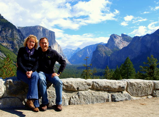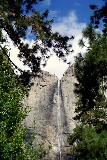 Rechts und links des Tales erheben sich steile Felswände, hindurch fließt der Merced River. Hauptattraktionen sind aber zum Einen die Yosemite Falls, welche ca. 740 Meter in die Tiefe stürzen und zu den höchsten Wasserfällen der Welt gehören. Allerdings trocknet dieser in den Sommermonaten meistens aus. Aufgrund von Niederschlägen in den letzten Tagen hatten wir aber Glück.