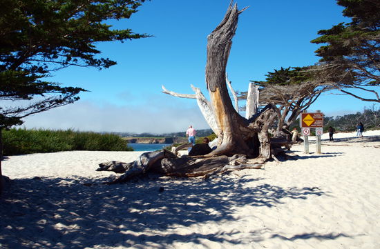 Die anschließende Weiterfahrt erfolgte wiederum im Nebel. Dies verhieß nichts Gutes für die Besichtigung des Städtchens Carmel. Aber was soll ich sagen, der Nebel war rund um, aber nicht in Carmel. Dieser Ort, in welchem Clint Eastwood mal Bürgermeister war, bietet sehr schöne Häuschen, bunt blühende Gärten und einen tollen Sandstrand mit hohen Wellen. Die Küste wird gerne von Surfern genutzt. Aber das Wasser des Pazifiks ist ziemlich kalt und der Wind pfiff auch recht ordentlich.