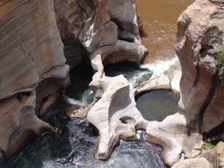 Auf der Rückfahrt nach Graskop durchfahren wir den Blyde River Canyon. Herzstück ist die gewaltige Schlucht des Blyde Rivers, die an manchen Stellen 700 m in die Tiefe reicht. Auf einer Distanz von 26 km Länge hat sich der Blydle River einen Weg mit insgesamt 1000 m Höhenunterschied in die felsige Landschaft der Transvaal Drakensberge geschnitten. Das Natur Reservat bietet eine üppige und vielfältige Flora und Fauna und diverse spektakuläre Aussichtspunkte, welche wir natürlich alle besuchen. Besonders die Bourke's Luck Potholes haben uns gefallen. Die "Potholes" sind tiefe Auswaschungen im Gestein am Zusammenfluss des Blyde mit dem Treur River.