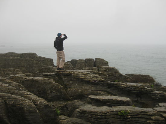 Das Geilste an Neuseelands-Suedinsel-Westkueste (kann mir noch jemand folgen so rein geographisch? hab da auch so meine Schwierigkeiten gehabt, allerdings nicht so schlimm wie mit den Wochentagen und Daten, die einfach verschwinden zu scheinen, wenn man zum nature boy mutiert) ist einfach, dass es nicht nur einfach landschaftlich schoen ist, sondern dass es an jeder Ecke auch noch was zu gucken oder zu machen gibt! Da kommt man nichts-ahnend an einen Parkplatz entlang des Highways und ein kleiner Schotterweg windet sich die paar Meter die Felsen entlang Richtung Kueste und mit einem Mal steht man vor einer riesigen Robbenkolonie, die sich faul auf den warmen Steinen raekelt. Und das kommt eben nicht nur einmal vor, sondern gefuehlt alle paar Tage.