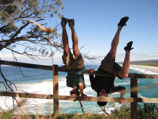 Nicht, dass hier der Eindruck entsteht, wir haetten 2 Wochen lang nur Bloedsinn im Kopf gehabt, nein, nein, wir haben auch so wunderbar sinnvolle Sachen wir Schnorcheln am Great Barrier Reef (von einer einsamen Palmeninsel aus) oder freies Delphin- und Walwatching auf einer kleinen Insel vor Brisbane gemacht. Und abgesehen davon haben wir alte Naturburschen uns taeglich dem hautnahen "nature watching" hingegeben und zwar mit ausserordentlichem Erfolg...