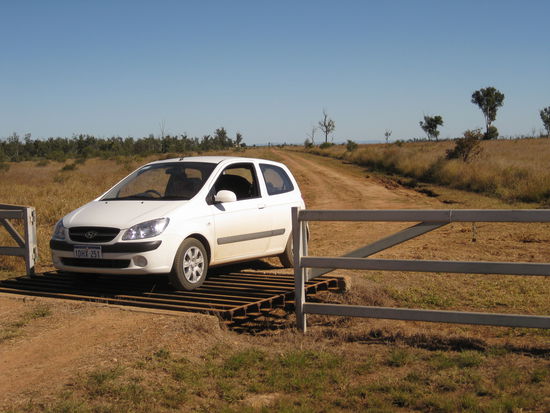 Dies ist unser Versuchsobjekt VOR dem Umbau, ein unscheinbarer, winzig kleiner Sportflitzer. Durch den Umbau zum 4WD-Range-Getz wurde er gaenzlich outback-faehig gemacht und konnte jedes Kuh-Gitter, Schotterstrassen, Flusslaeufe und Abhaenge meistern...