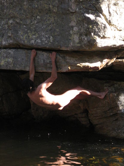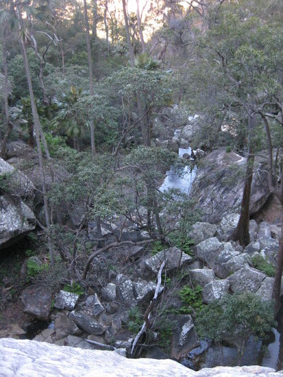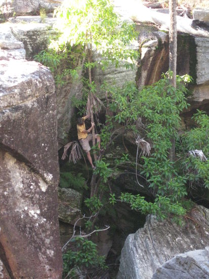 Um dem Trip allerdings die richtige Wuerze und das Abenteuer-Feeling zu verleihen, sollte man definitiv moeglichst oft von den vorgegebenen Pfaden abweichen, aus illegal mal die ersten zwei Buchstaben streichen oder wie der lonely planet es ausdrueckt: "off the beaten track" sein Glueck versuchen, auch wenn die Autoren damit wahrscheinlich eher nicht unsere Art "vom Weg abweichen" meinten, wie zum Beispiel spontan einem Regenwald-Flusslauf in einem Berg-Nationalpark zu folgen, dabei 5 m hohe Palmen runterzuklettern, sich auf ueberhaengende Felsen an 30m tiefe Abgruende zu setzen oder den Nudisten spontan in einem eiskalten Wasserbecken die Ehre zu erweisen. Abgesehen davon kommt es echt geil, sich abends bei der Schlafplatzsuche dann den Kick zu geben, direkt neben einem "no camping and overnight staying" Schild sein Lager aufzuschlagen, wobei wir uns immer damit beruhight haben, dass eh keiner damit rechnet, dass in der Schubkarre jemand schlaeft