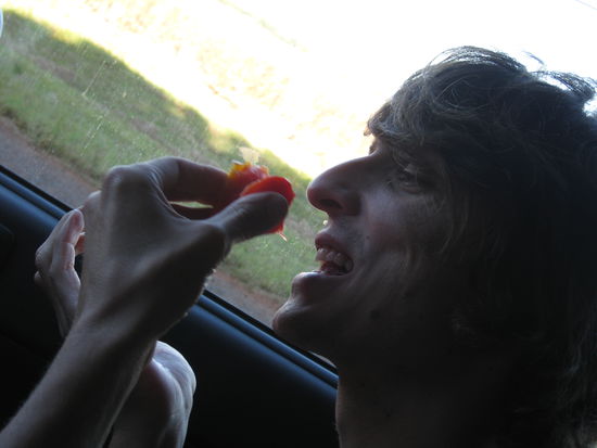 Was wir aber definitiv wollten, waren frische Tomaten! und wo kriegt man die? richtig: direkt vom Feld also unbemerkt gebueckt die Tomatenreihen entlanggeschlichen, waehrend der Bauer sich nebenan auf seinem Trecker ausgetobt hat und schoen mal so einen knappen Kilo Tomaten gepflueckt, die als Diebesgut ehrlich gleich dreimal so gut schmecken!