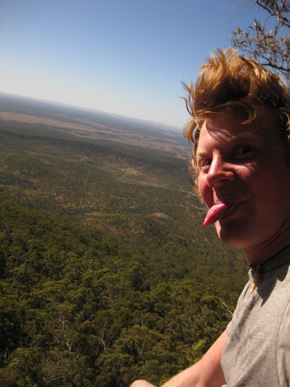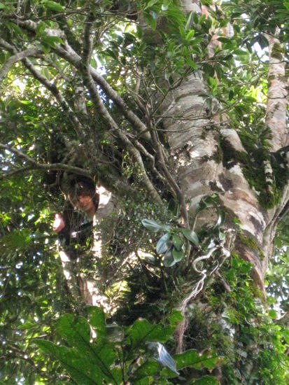 Ach ja, was macht man in einem relativ langweiligen botanischen Garten? Man findet eine Art hohlen Pippi-Langstrumpf-Limonadenbaum und klettert diesen unerlaubterweise 15 m im Inneren des Baums hoch (warum? natuerlich, damit man da oben eine phaenomenale Sicht auf die anderen Baumkronen hat!), um dann von einem Parkranger fotografiert zu werden mit den Worten: "This guy is gonna get in trouble..." Also man kanns auch uebertreiben mit der Ordnungshueterei...