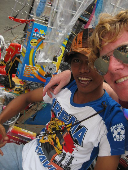 ABER: Nicht, dass hier der Eindruck entsteht, ich wuerde mich hier nich amuesieren oder wohl fuehlen in dieser irren Welt! Obwohl es eine krasse Umstellung und Kulturschock bedeutet, besteht genau im Zurecht-Finden in dieser Welt das Abenteuer und das Interessante dieses Teils der Reise. Denn obwohl alles so dreckig und vermuellt ist, feiern meine Sinne hier jeden Tag wieder ein Fest, weil es einfach hinter jede Ecke oder eingefallenen Mauer etwas Neues zu entdecken gibt. Deshalb bevorzuge ich es hier in Jakarta auch, nicht einen bestimmten Punkt zu suchen (den man mit den vorhandenen Strassenschildern selbst mit lonely planet sowieso nicht findet), sondern einfach drauf los zu latschen und sich in die Massen an Menschen, Gassen und Shops hineinziehen zu lassen. Genau diese ganzen Dinge, die ich genannt habe, machen die asiatische Welt so anders und aufregend und einzigartig und deshalb bin ich keineswegs genervt oder demotiviert, sondern freu mich tierisch auf den Rest dieses exotischen Landes...