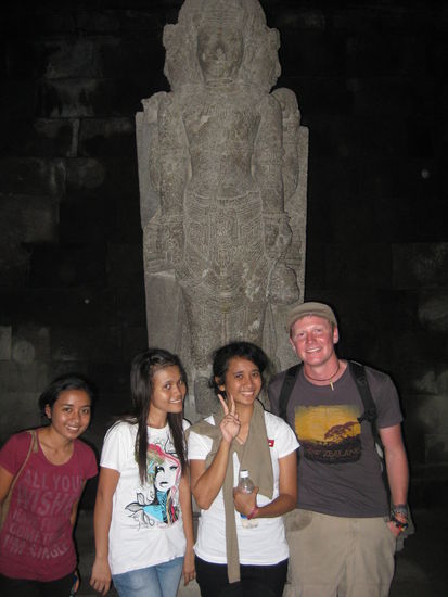...die nur gestoert wird von gelegentlichen indonesichen Fans, die mich anscheinend fuer eine altehrwuerdige Gottheit halten un schnell ein Foto mit mir machen wollen. Kann man so herzlich lachenden Kids einen Wunsch abschlagen? Also raus aus der eh ein bisschen langweiligen Meditation, kurz in die Kamera grinsen und wieder in den geistigen Tiefschlaf...