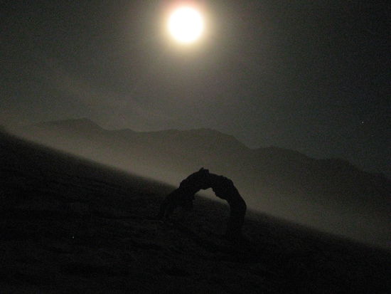 Mir wurde nahegelegt, diese irre Nachtwanderung auf mich zu nehmen, damit ich den Sonnenaufgang vom Vulkan aus sehen koennte und als ich mir dann ein schoenes erhoehtes Plaetchen in der dicken, schwarzen Asche, hab ich verstanden warum: Die Sonne lugte ganz langsam ueber den Rand der die Wueste umgebenden Bergkette und hat zuerst nur die Aschewolke ueber dem ausgebrechenden Vulkan rot angeleuchtet! Einfach ein irre Anblick!