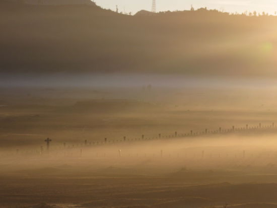 Aber als die Sonne dann die ganze Wueste in ein leuchtendes Rot verwandelt hat und die Sonnenstrahlen ganz langsam ihre langen Arme in den Nebel Nebel gestreckt und ihn zerteilt haben, hab ich wirklich nur noch mit offenem Mund da gesessen und das ganze Spektakel mich ueberwaeltigen lassen!
