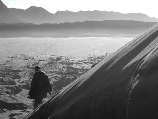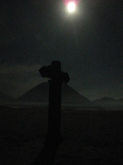 Nein, so schlimm war es nicht, aber sagen wir mal so, ich hab es mal wieder abenteuerlicher gemacht, als es in der normalen Pauschal-Touri-Variante gewesen waere und hab mich nicht mit dem Jeep zum sicheren Aussichtspunkt auf den Vulkan-Krater bringen lassen, sondern bin voellig bescheuert um 3 Uhr nachts aufgestanden nach relativ kalten 4 Stunden Schlaf (wir befinden uns immerhin auf ca. 2600 m und da ist es selbst in Indonesien kalt nachts, aber irgendwie auch eine Erloesung nach der Hitzeschlacht die Tage zuvor) und hab mich in die Wolldecke gewickelt noch gefragt, warum ich so einen Quatsch ueberhaupt mache und nicht einfach liegen bleibe wie normale Menschen. Aber das Adrenalin begann schon wieder wild zu pumpen in meinem Koeper, also Taschenlampe, eine Flasche Wasser und ein kleines Fruehstueck geschnappt (ja, ich habe tatsaechlich aus der Gletscherwanderung in Neuseeland GELERNT ) und los gings im hellen Mondschein durchs ausgestorbene Bergdorf hinunter in den Vulkankrater, dessen bedrohliche Silouette sich als einzige im ganzen Tal gegen den grauen Himmel abzeichnete und mir einen kleinen Schauer ueber den Ruecken laufen liess. Ich schaetze ich hab einfach zu viele schlechte Horror-Filme gesehen, in denen in genau solchen Kulissen immer die Boesen leben...