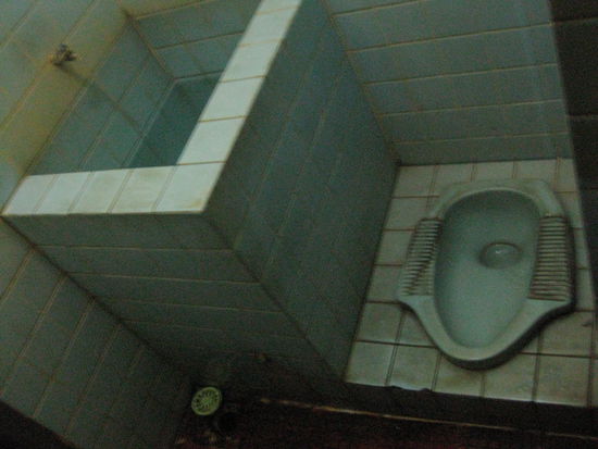 Noch eine kleine Anekdote zu der hier herrschenden Hygiene bzw. Badezimmer-Gewohnheiten, denn diese kann man getrost alle ueber Bord werfen: Meistens gibt es anstatt eine richtige Toilete nur eine Art Loch im Boden mit zwei Fussflaechen links und rechts davon, so dass man sich wunderbar hinhocken kann zum Geschaeft verrichten. Bloed ist nur, wenn man so verkuerzte Achilles-Sehnen hat wie meiner Eins uns nicht so sitzen kann, ohne umzufallen! Wie das aussah oder wie ich das kleine Problemchen geloest habe, ueberlasse ich jetzt mal eurer Vorstellungskraft...