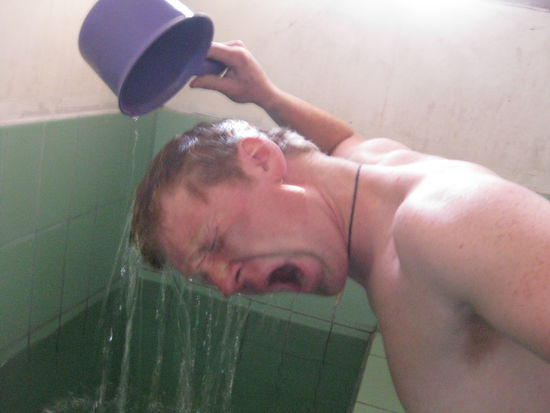 Jedenfalls fand ich dann in dem Hostel nach meiner Vulkan-Wanderung voellig verdreckt und mich nach einer reinigenden Dusche sehnend nur ein Wasserbecken und einen Schoepfer vor, so dass ich mir das abgestandene, eiskalte Wasser wohl oder uebel mehr oder weniger grazil ueber den Schaedel giessen musste und dabei verdammt viel Spass hatte