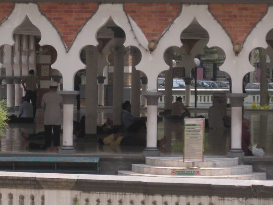 Man laeuft unvermeidlich an Hunderten von Moscheen vorbei, wo die Menschen entweder dem Geleier aus dem Minarett-Megaphon lauschen, vor sich hinbeten oder einfach nur schlapp irgendwo rumliegen
