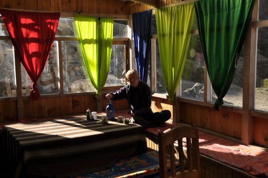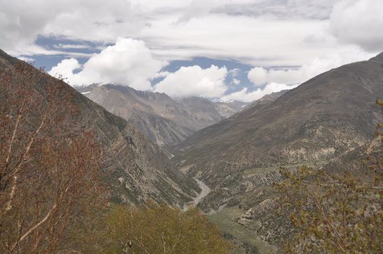 Heil zurück übers Geröllfeld kamen wir in einem kleinen Dorf an, wo wir nicht mehr weiter wussten ... Wir sahen keinen Trail und konnten niemanden fragen, da das Dorf mit Kühen und Kälbern bewohnt war. Zwei andere Trekker, eine Deutsche und ein Spanier, wiesen uns den Weg und im nächsten Dorf waren wir mit ihnen alleine unter Einheimischen - es war als wären uns durch unseren Abstecher zum See alle anderen Trekker davongelaufen, niemand mehr da! Manchmal kann trekken in der Nebensaison ganz schön einsam sein...