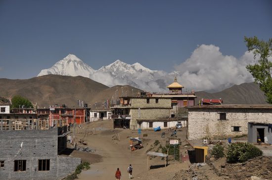 Es ist kein Wunder, dass wahrscheinlich die meisten Trekker in Jomson, dem zweiten Stop nach dem Pass, den Trek mit einer Busfahrt oder einem Flug in die nächste größere Touristenstadt Pokera beenden. Denn der Abschnitt Muktinat bis Jomson stellt sich als der "ungemütlichste' Tag des Treks dar. Im tiefsten Tal der Welt, zwischen zwei 8000+ Gipfeln läuft man hier im Tal unter 3000m. Ab Mittag saugen die aufsteigenden warmen Luftmassen die Luft das Tal hinauf (wie im Kamin). D.h. man hat einen stetigen starken Gegenwind. Da das Tal hier gänzlich aus trockenem Flussbett besteht, in dem zudem eine wenn auch dünne aber staubige Straße gebaut wurde, läuft man nicht nur gegen einen heißen sondern auch gegen einen staubigen und mit kleinen Steinchen versehenen Gegenwind an.