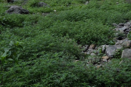 Die Bauarbeiten machten diesen Abschnitt des Treks zudem sehr gefährlich! Die herausgebrochenen Felsbrocken wurden nämlich einfach den Hang herunter gekullert. Einzige Sicherheitsvorkehrung: ein Arbeiter sitzt am anderen Ende der Brücke und hält eine Fahne je nachdem ob gerade jemand vorbeiläuft. Leider sah dieser Jemand so uns, als hätte er gerade diese Pflanze, die hier überall wächst geraucht ... So wurde unser Schritt an manchen Stellen von selbst immer schneller.