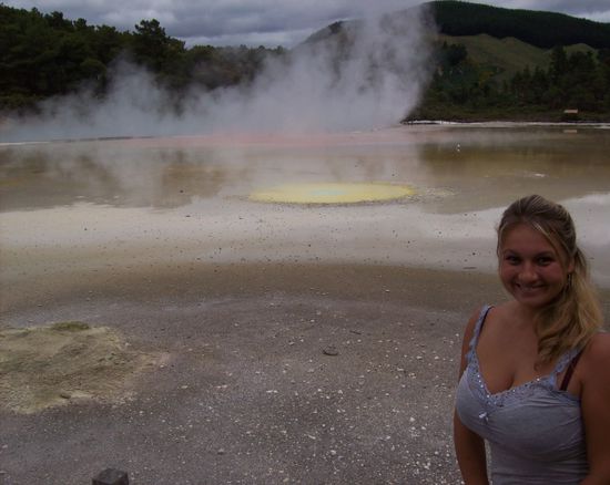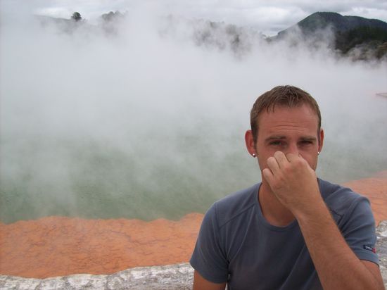 Eigentlich wäre es hier ganz nett, wenn da nicht der ständige Geruch nach faulen Eiern in der Luft liegen würde, welcher von der schwefelreichen Luft Rotoruas stammt.