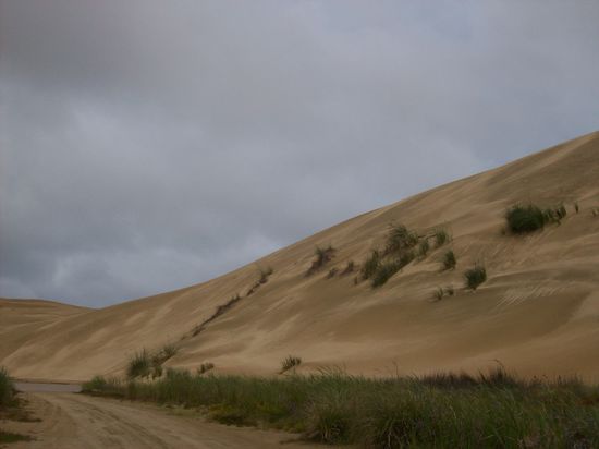 Dieser durchgehende Streifen hoher Sanddünen dient als Highway. Das macht dann schon Spaß DIREKT am Meer entlang zu fahren.