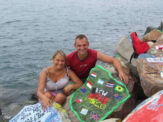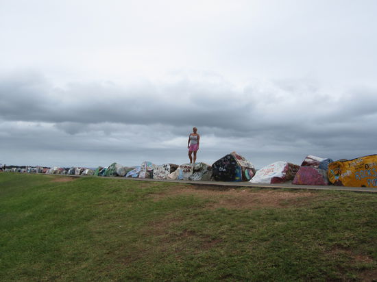 Am Sundowner Breakwall (einer großen, langen Reihe von Felsbrocken, die als Wellenbrecher dienen) verewigen sich seit etwa 10 Jahren Touris mit allen möglichen Bildern, Gedichten und sonstigen geistigen Ergüssen auf den Steinen.