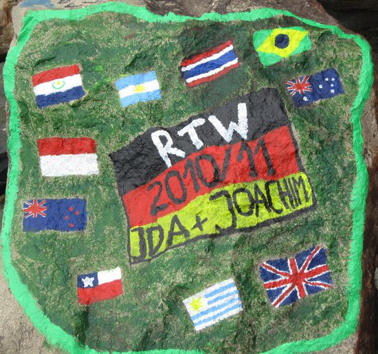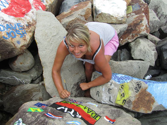 Auch wir haben uns dann die Zeit genommen, uns einen der wenigen unbemalten Steine geschnappt und unsere Spuren der Nachwelt hinterlassen