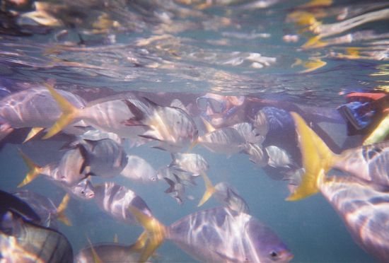 Selbst beim Schnorcheln muss man diese Ganzkörpergummis tragen, um sich vor den äußerst giftigen Seewespen (eine Quallenart) zu schützen.