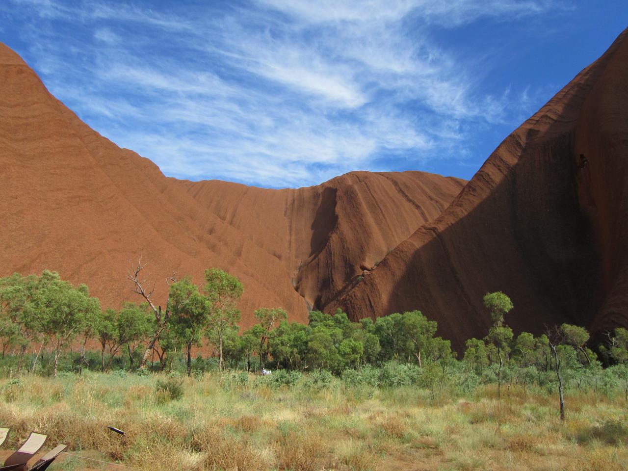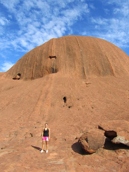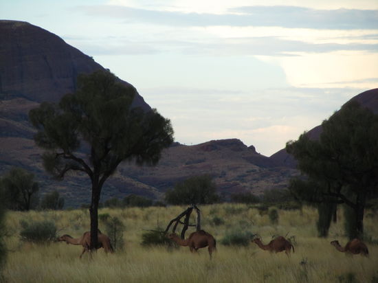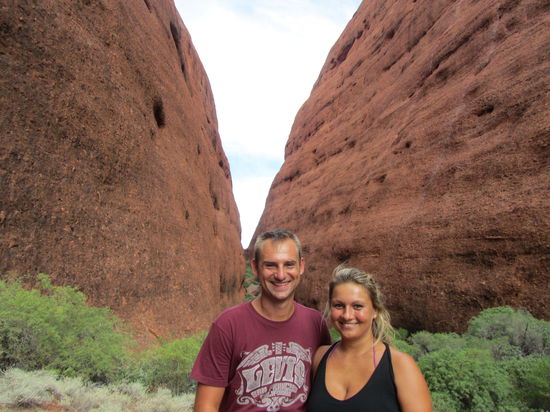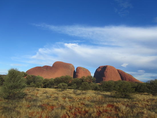 Diese Gruppe von kuppelförmigen Felsen bildet kleine Täler und Schluchten, die als Kata Tjuta oder Olgas bekannt sind. Kata Tjuta bedeutet "viele Köpfe".