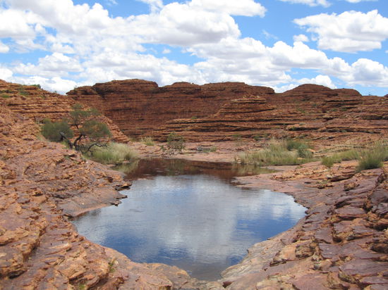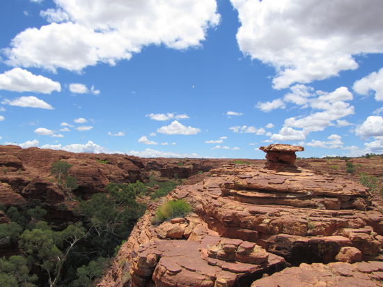 Hier haben wir den Kings Canyon Rim Walk gemeistert. Einen 6,5km langen Wanderweg über die Felsen am Rande der Schlucht.