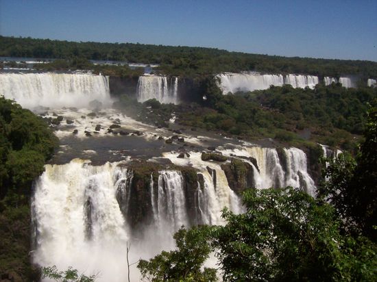 Heute haben wir uns die Wasserfälle von der brasilianischen Seite aus angesehen. Sie erstrecken sich über 3km Breite und fallen 70 Meter in die Tiefe. Ganz aktuell sind die Iguacu-Fälle auch in der Endausscheidung zu den neuen 7 Weltwundern.