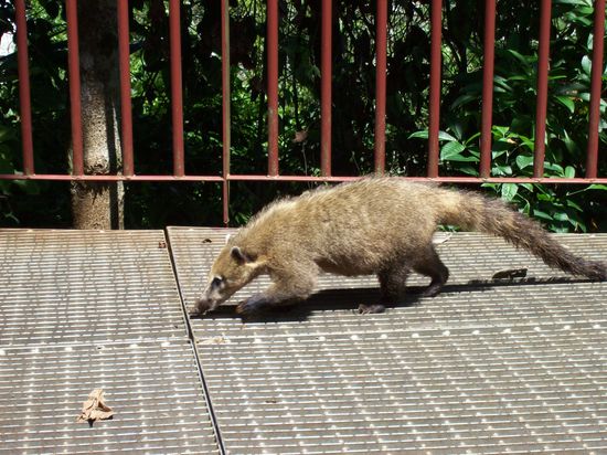 Heute sind wir selbstständig mit dem Bus nach Argentinien rüber, also rein in den Regionalbus bis zum brasilianischen Grenzposten, raus um den Ausreisestempel zu bekommen, warten auf den nächsten Bus, 500m fahren, raus für den argentinischen Einreisestempel, rein in den - gütigerweise wartenden - Bus, 5km fahren bis zum Busbahnhof, wieder raus, warten auf den Regionalbus zum Parque Nacional und endlich waren wir da.