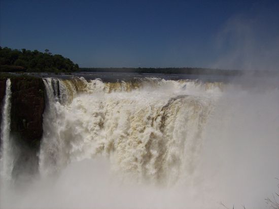 Auf dieser Seite der Wasserfälle hat man weniger den Überblick ist dafür aber viel näher dran und spürt die unglaubliche Kraft des hinunterschießenden Wassers viel besser.