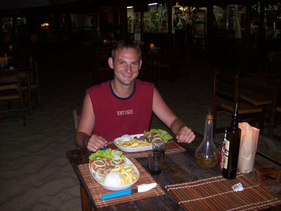 Zu jedem Gericht gehören ohne wenn und aber Reis, schwarze Bohnen und Farinha (Mehl aus Maniokwurzeln). Was dann an Fleisch oder sonstigen Beilagen auf den Teller kommt ist variabel zu gestalten. Aber Reis, Bohnen und Farinha MÜSSEN dazu.