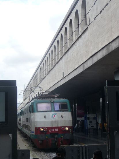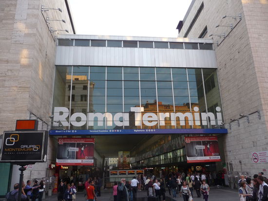 Nach 40 Minuten Fahrzeit erreiche ich mit dem Leonardo Express den Hauptbahnhof Rom Termini der Dreh und Angelpunkt der Hauptstadt ist und von ca. 400000 Reisenden am Tag besucht wird.Der Bahnhof wurde 1867 eröffnet und ab 1938 durch einen Neubau ersetzt wie er im wesentlichen noch heute besteht.Es gibt 29 Bahnsteige und die meisten Bus und Trambahnlinien Roms fahren den Bahnhof an .Außerdem kreuzen sich beide U Bahn Linien im Untergeschoß der Station.