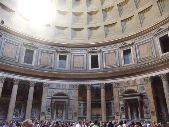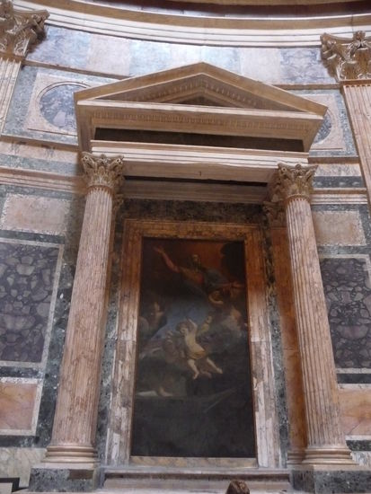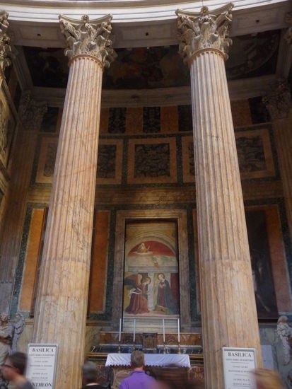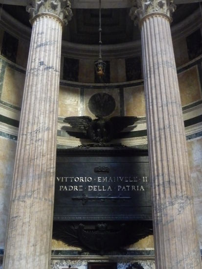 Gleich um die Ecke erreiche ich das Pantheon was sicher zu einen der Wahrzeichen Roms gehört.Der Bau wurde von Marcus Agrippa begonnen und wurde bis 125 n. Chr. unter Kaiser Hadrian fertiggestellt.Der Bau hat eine Höhe von 43 m und ein Durchmesser von 43 m und ist damit der größte Hallenbau der Antike.Das Pantheon dient u.a. als Grabstätte für den Maler Raffael,Architekt Baldassare Peruzzi,Giovanni da Udine und auch Mitglieder der Italienischen Königsfamilie wie Viktor Emanuell II. oder Umberto I.