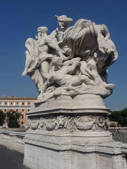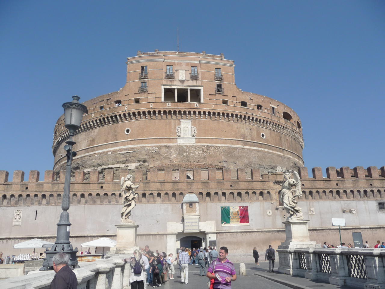 Die Engelsburg " Castelo Sant Angelo " wurde ursprünglich als Mausoleum für Kaiser Hadrian und seine Nachfolger bis 139 n. Chr. errichtet und später von verschieden Päpsten zur Burg umgebaut die diese als Zuflucht nutzen.Die Engelsburg hat Ähnlichkeit mit dem Augustusmausoleum.Die zum Mausoleum führende Engelsbrücke wurde unter Kaiser Hadrian bis 134 n. Chr. erbaut.Der Name geht auf das 17. Jahrhundert zurück und nimmt u.a. Bezug auf die zehn prachtvollen Engel im Barockstil die auf der Brücke stehen.