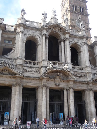 Nach dem ich mich durch den Hauptbahnhof Termini gekämpft habe und mich dort mit einen Wochentiket CSI für 16 Euro ausgestattet habe das mich berechtigt alle Verkehrsmittel der Stadt zu nutzen habe ich meine erste Sehenswürdigkeit besucht.Es ist die Kirche Santa Maria Maggiore.Der Bau wurde unter Papst Sixtus III. 432 bis 440 errichtet.Die Basilika ist die größte Marienkirche Roms und ist extorriales Besitztum des Vatikans.Im 16. Jahrhundert wurde die Kassettenholzdecke mit den ersten Gold aus Amerika ausgestattet.Die Kirche beherbergt u.a. die Grabmäler der Päpste Honorius III.,Nikolaus IV.,Pius V.,Sixtus V.,Clemens VIII.,Paul V. und Clemens IX.