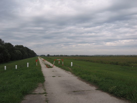 30 Kilometer lang führt der Deich parallel über dem alten Donaubett, das zugleich die Grenze zu Ungarn bildet.