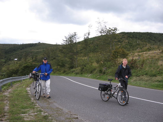 Als wir vor Lendak weit unten angekommen sind, haben wir Kräfte und Unternehmungslust genug, um nun die ersten Steigungen anzugehen, sich warmzustrampeln hat auch seinen Reiz ! Die lange Steigung an der Spiska Magura schaffen wir in der Vorfreude auf den Abhang auf der Nordseite.