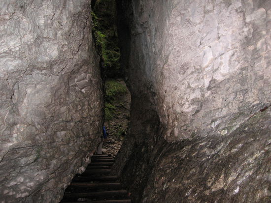Nun müssen wir durch eine ganz enge Spalte, der Bach unten, wir oben dazwischen !