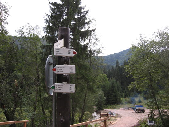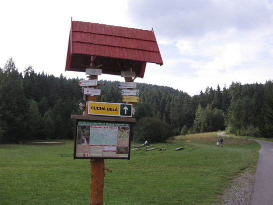Heute kreuzen sich beim Kloster zahlreiche Wanderwege - wir hätten die Karte besser mitnehmen sollen! So verlassen wir uns darauf, dass die gelbe und später die grüne Markierung zurück nach Podlesok führt, wenn auch vielleicht nicht auf dem kürzesten Weg.