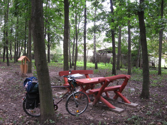 Da fällt es leicht, Kosice zu verlassen. Es weht kräftig aus Norden, wo über den Bergen dichte Wolken hängen. Im Süden ist es etwas heller, und ich brauche nicht mehr mit Handschuhen zu radeln. Allein lege ich ein tolles Tempo vor, schon nach einer Stunde bin ich 26 km weiter im Grenzort Hidasnemeti in Ungarn, Zeit für ein Picknick im Freien.