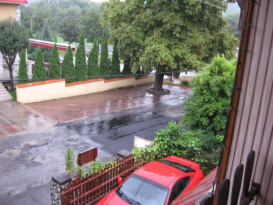 Doch auch dies Problem löst sich: Eine Frau spricht mich an, ob ich eine Unterkunft suche, sie hätte was anzubieten. Keine Frage, dass ich das Angebot unbesehen annehme, mich warm dusche, die letzten trockenen Sachen anziehe und dann erst zum Fenster hinaussehe: Ein trostloser Blick auf regennasse Straßen und überschwemmte Fußwege!