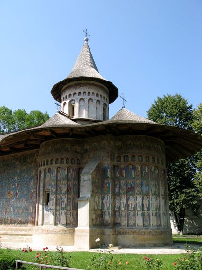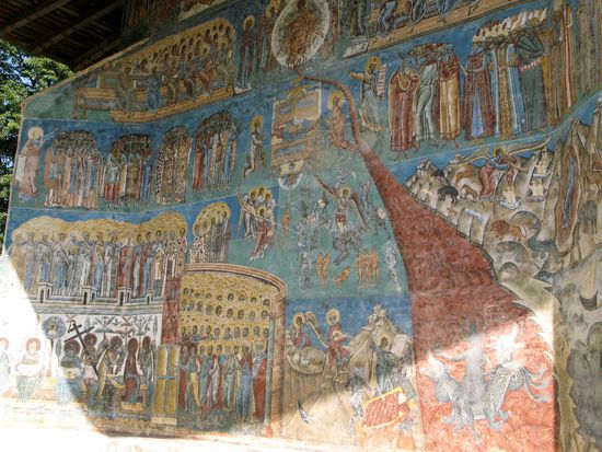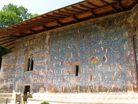 Von allen Klosterkirchen hat das Kloster Humor die ältesten Malereien. Das Fresko an der Südwand zeigt die Belagerung Konstantinopels durch die Perser im 7. Jh. Obwohl seit der Entstehung dieser Klosterkirche bald 500 Jahre vergangen sind, leuchten die Farben noch immer erstaunlich frisch in den für Humor typischen Rottönen.