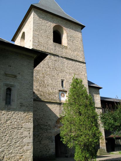 Eher an eine mächtige Festung als an eine Stätte des Glaubens und der Andacht erinnert das Manastirea Dragomirna. Hoch und schlank erhebt sich in der Mitte die reich verzierte Klosterkirche, von deren 46 m hohem Kirchturm man einen wunderbaren Panoramablick geniesst.