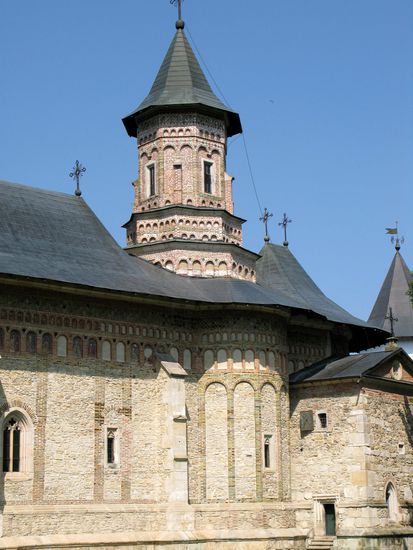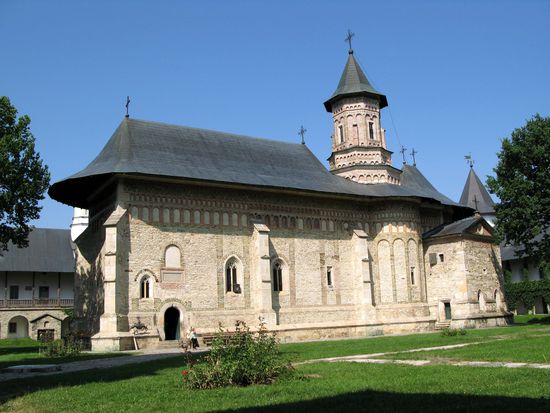 Manastirea Neamt ist der älteste Klosterbau der Moldau. Hier leben noch etwa 100 Mönche. Durch die mächtigen Mauern geschützt, überstand das Kloster weitgehend unbeschadet alle Angriffe. Besonders prächtig: die Ende des 15 Jh. unter Stefan dem Grossen im moldauischen Stil errichtete Himmelfahrtskirche. Statt mit Aussenfresken ist ihre Fassade mit Friesen aus glasierten, grünen und gelben Keramikscheiben verziert.